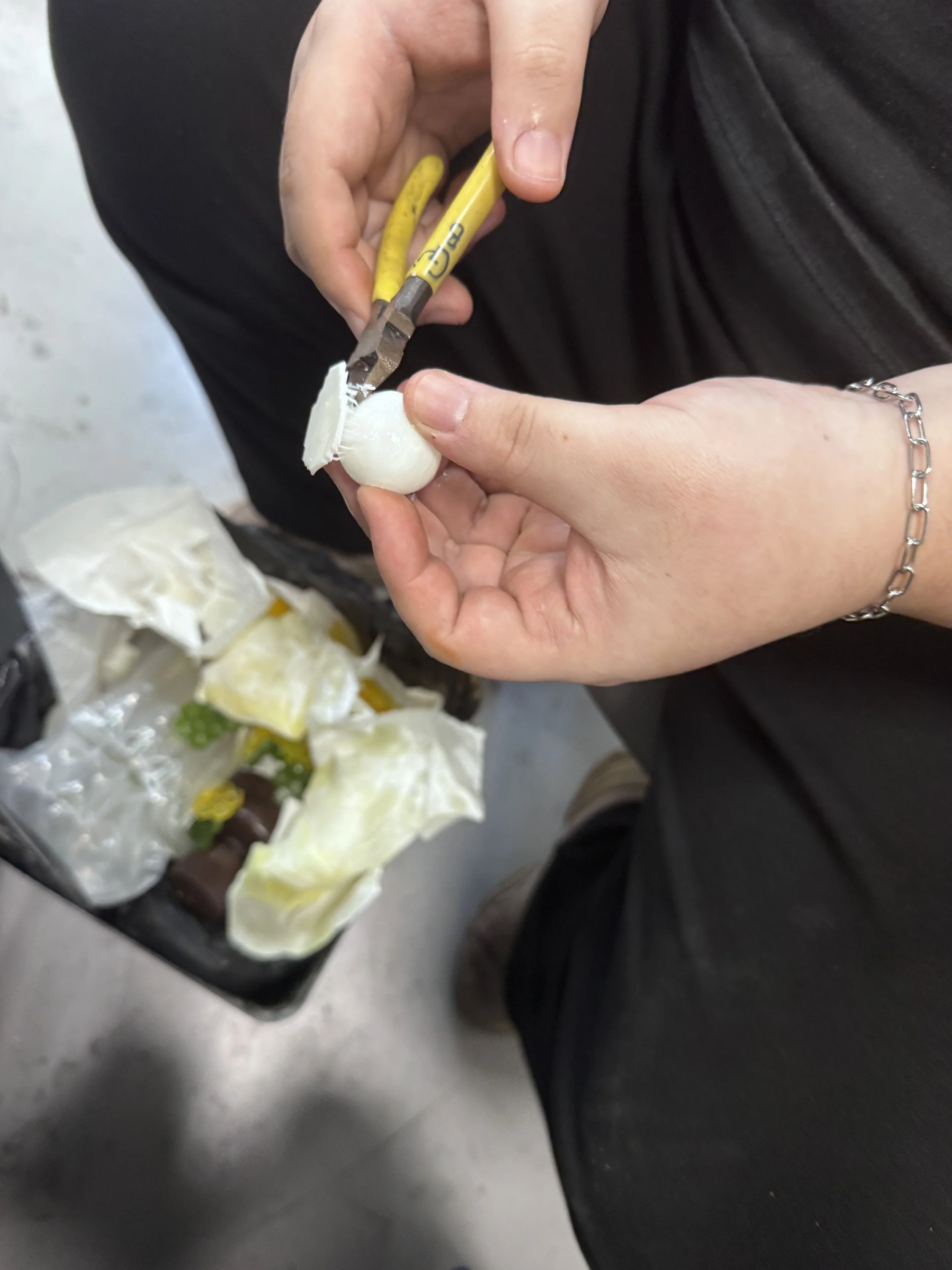 A wearable sculpture exploring the inner anxiety of introverts during public speaking. The piece is covered in realistic eyeballs, symbolizing the pressure of being watched and judged. It turns invisible emotional tension into a visible, unsettling form.